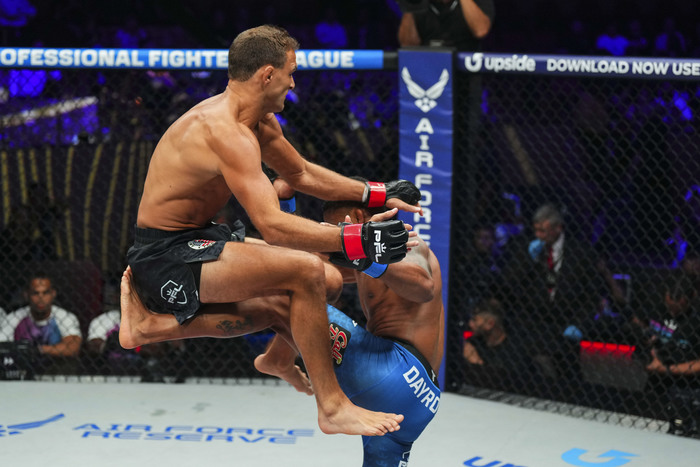 NCAAディビジョン1で活躍するなどフォークスタイルレスリングと柔術を融合させたグラップラーのサバテロは、元Titan FCバンタム級王者。Bellatorで活躍後、2024年8月の前戦ではPFLのワンマッチに出場。大熱闘を繰り広げていた。
