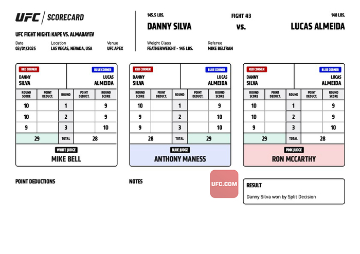 #UFCVegas103 Official Result: Danny Silva (29-28, 29-28) defeats Lucas Almeida (29-28) by Split Decision