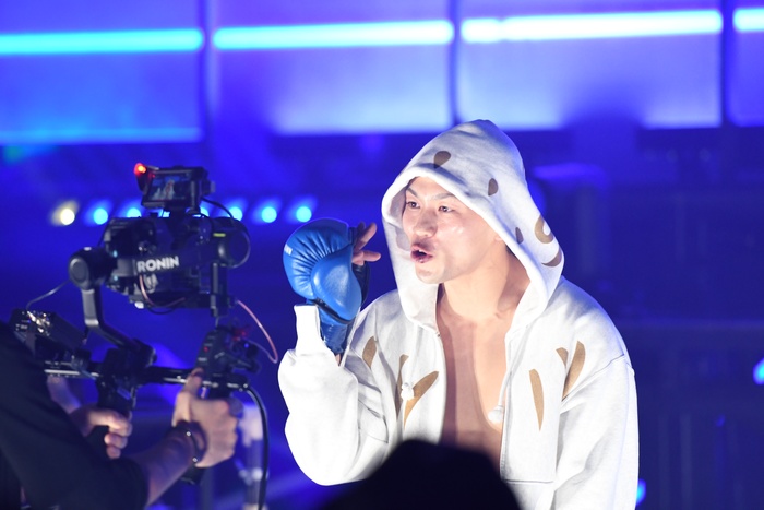 2R、咲季はバックハンドブローを連発。ワンツーで入っていくと今度はRYOGAがバックハンドブロー。咲季のジャブに右クロスを合わせるRYOGAは右アッパーも突き上げる。右のカウンターを当てていくRYOGA。咲季は口を大きく開けている。