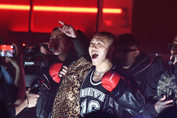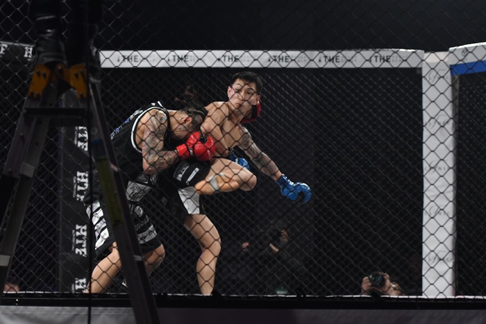 3R、咲季はバックハンドブローから左右の連打、RYOGAを突き飛ばして転倒させる。左右フックを打つ咲季は「こいやっ!」と叫んでいく。RYOGAは一時打たれたが右を返した。
