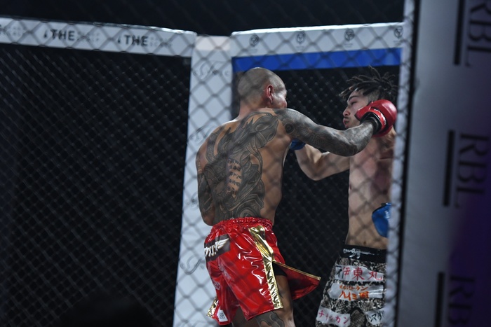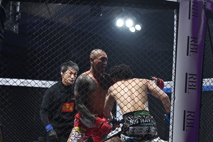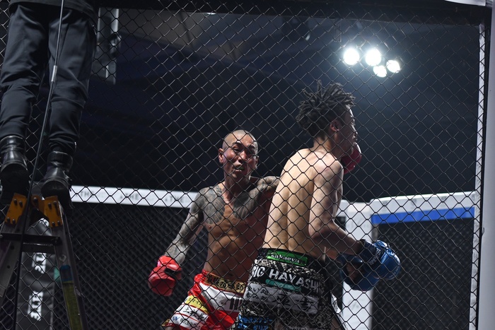 飯伏幸太のみ村田につけたが判定1-0でドロー。延長戦へ。今度は村田が前へ出て左右フックを打ち込んでいく。これに押された三河だが前へ出て逆襲の左右フック。後ろ蹴りも繰り出す。ノーガードになる三河に村田はワンツーの連打で前へ出て、右ミドル。