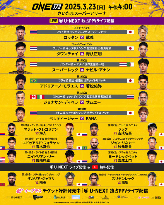 なお、当日は、ONEバンタム級MMAの黎明期を支えた元同級王者のビビアーノ・フェルナンデスが同団体2番目の殿堂入りアスリートとなる式典が行われる(※初代殿堂はデメトリアス・ジョンソン)。