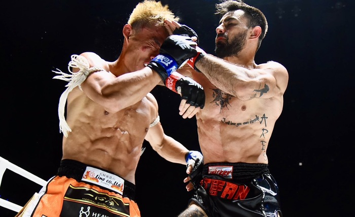 1R、北野は右カーフ、コロディは右ミドル。北野がその右ミドルをカットし、左の三日月、後ろ蹴り、左ローからの左ミドルをヒットさせる。左インローも蹴る北野にコロディはワンツーから組み付くが、北野は首相撲で倒す。北野の右カーフが何発も決まり、コロディはまたも首相撲に持ち込むが北野は投げる。ヒジから首相撲に持ち込むコロディはヒザ。