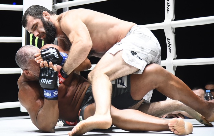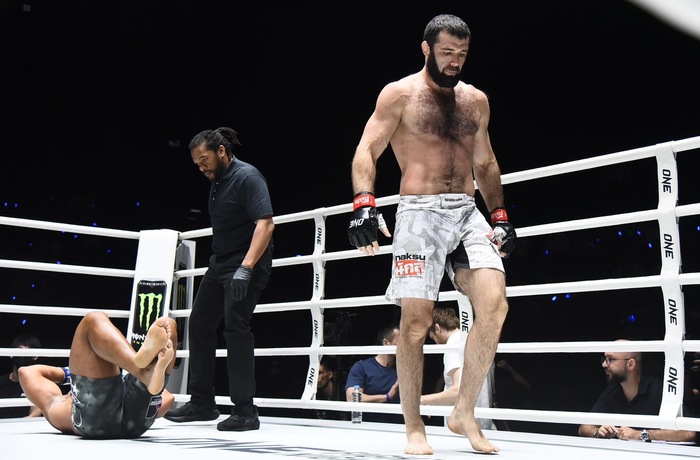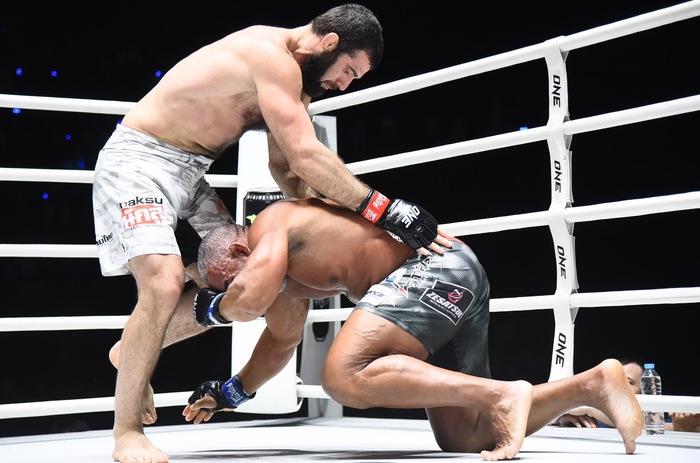 1R、開始と同時に突っ込んでいき、その勢いのままテイクダウンに行こうとしたガルバォンだったが、かわされてエルドアンのヒザを頭部にもらう。エルドアンは上からパウンドを落とすとガルバォンは全く動けず。レフェリーがストップした。