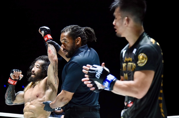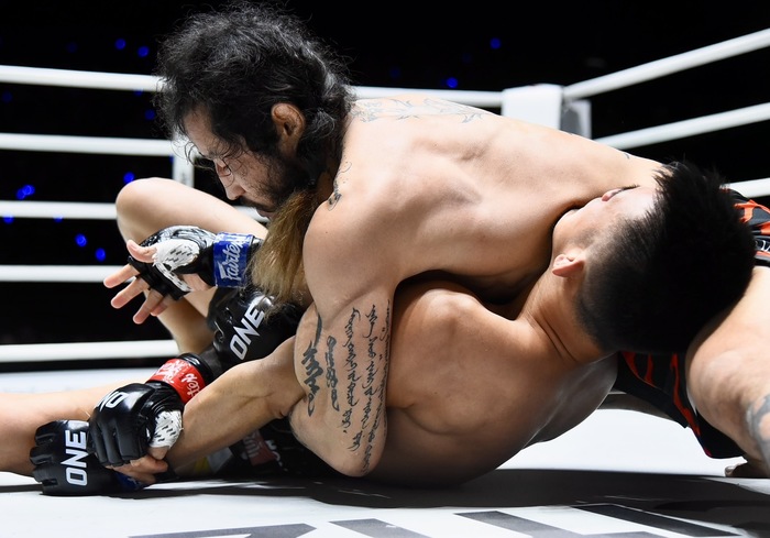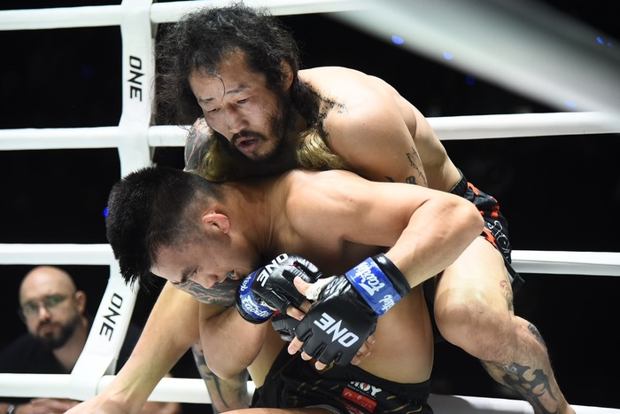 1R、バータルフーがいきなり上段後ろ廻し蹴りの奇襲。パカティウが組み付いて左脇を差したが、バータルフーが差し返して体勢を入れ替えテイクダウンに成功する。パカティウがバータルフーの左足を持ってコントロールし、得意のキムラの体勢へ。パカティウは両足でバータルフーの頭を挟んでこのピンチをしのいだがバータルフーはトップを譲らず。パカティウの左腕を狙い続ける。残り時間が少なくなるとバータルフーはヒジを顔面へ落とした。