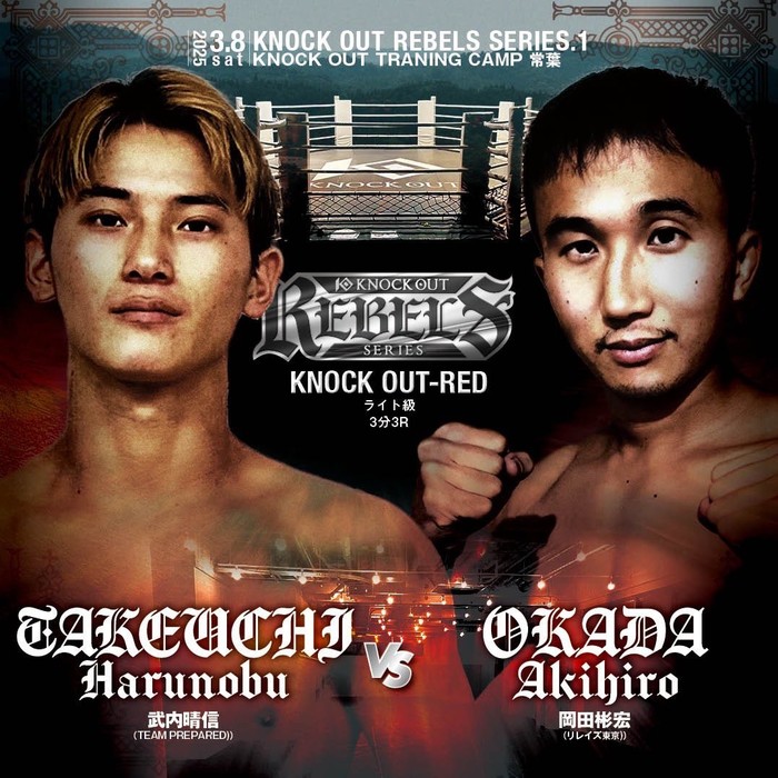 1Rが始まると同時に左ミドルを蹴る岡田。竹内は前へ出ると右ストレートをヒット、岡田は組み付く。岡田は思い切り右ストレートを打ち、勢いで自分が転倒してしまうほど。竹内はジャブ、岡田は組み付いてのヒジ。組みの状態から離れたところで、竹内が右ストレートを放つとテンプルをかすったかこの一発で岡田は失神。しばらく起き上がれないほどのダメージを負った。