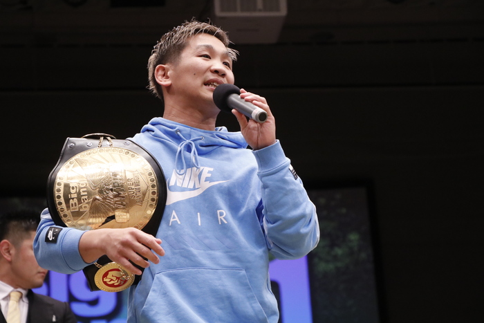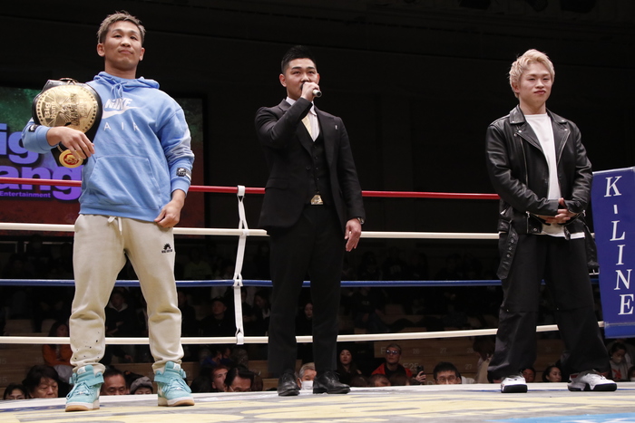 谷山俊樹Bigbangプロデューサーがリング上で発表したのは、Bigbangスーパーバンタム級タイトルマッチ3分3R延長1R、王者・良星(KSR GYM)vs.挑戦者・晃貴(K-1 GYM SAGAMI-ONO KREST)。