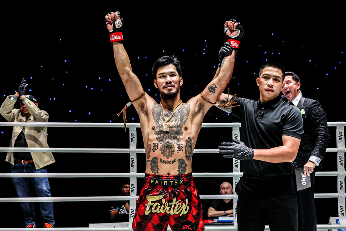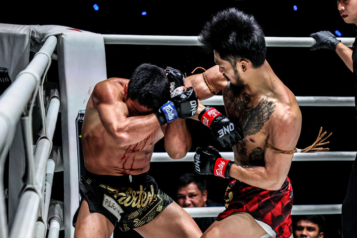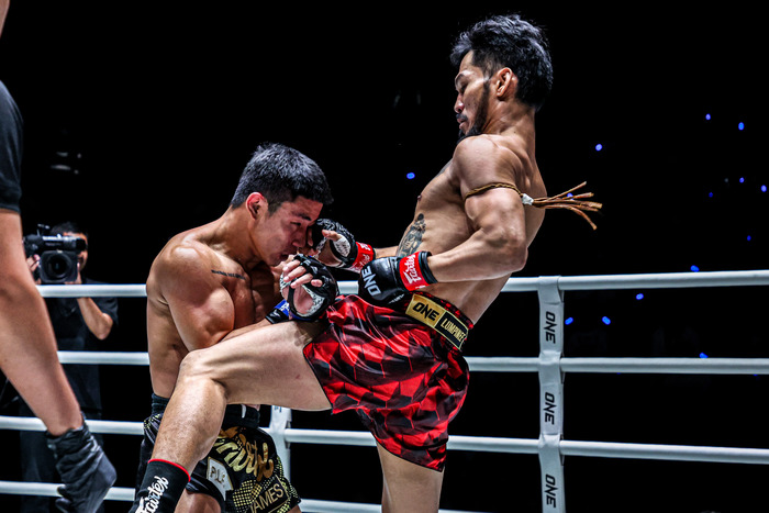 2R始まってすぐにコムアウットがフックを出しながら前へ出たが、左ボディを打ったところスアキムが右ヒジ一閃。ダウンを奪う。、立ち上がったコムアウットは頭から流血。試合続行となったが、スアキムが右ヒジを連打するとコムアウットがしゃがみ込み、スアキムがTKO勝ち。4連勝となった。35万バーツのボーナスもゲット。「ジャブを出そうとしたらスペースが出来たのでヒジを出した。またONEで戦わないかと誘ってくれたから今の自分がいます」とスアキム。