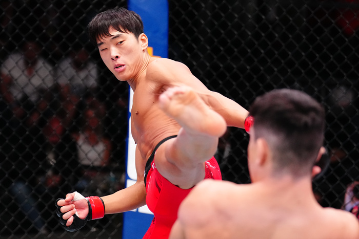 スンウはUFC4勝6敗。ムエタイベースで、189cmのリーチを持つストライカー。3連敗で後がないところで、UFC0勝1敗のヤルノ・エレンスにカーフキックを効かせて判定勝ちしたが、続くスティーブ・ガルシア戦では、3連続KO勝ちで波に乗っていたガルシアに1Rにパンチを効かされてKO負けした。32歳。