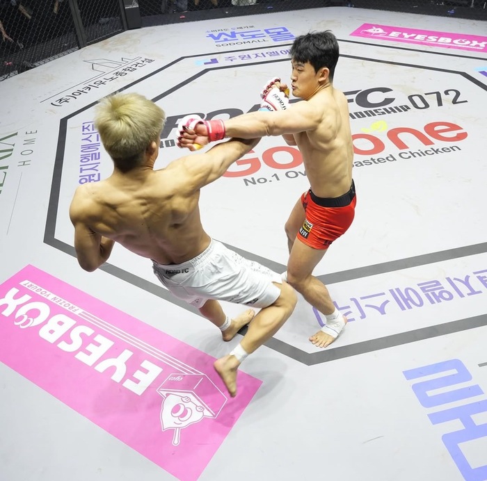 対するキム・ヒョンウはバンタム級グローバルトーナメントベスト4。2022年5月にヤン・ジヨンにギロチンチョークで一本負け後、2024年7月に復帰し、ARCでキム・ガクジンにリアネイキドチョークで一本勝ち。8月にルーカス・ペレイラに三角絞めで一本勝ち。10月にキム・スーチョルに判定負けしている。