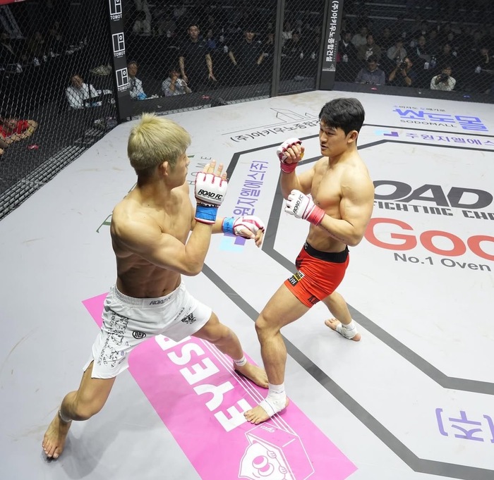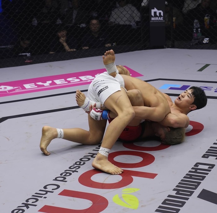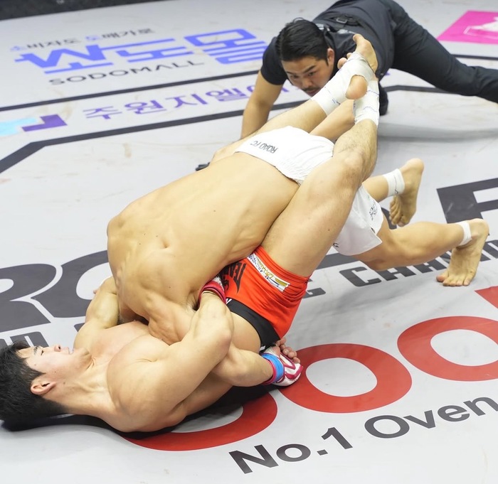 1R、ともにオーソドックス構え。カーフを当てる黒井は、キム・ヒョンウの打ち終わりに右ストレートを合わせてダウンを奪うとパウンド連打! ガードを取り、下から左腕でギロチンを巻いたキム・ヒョンウは、右足でフタをし、中腰から対角に出ようとした黒井の際にクローズドガードに入れ直して絞め上げ、タップを奪った。