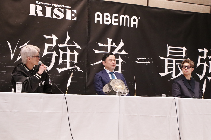 タイトルマッチ調印式を終えると、伊藤隆RISE代表は「3年ぶりにスーパーライト級王座が決まります。勝者は6月から始まる65kgトーナメントにシード権を与えたい。勝つことによって世界へ動く」と話した。