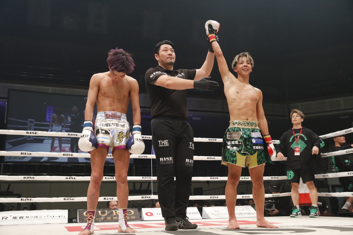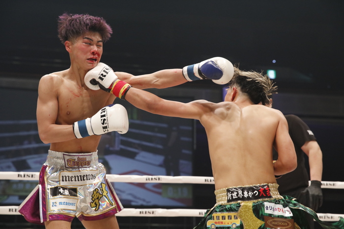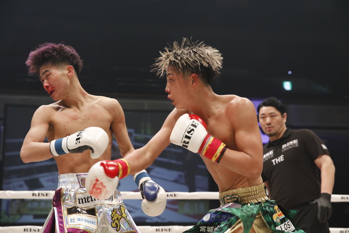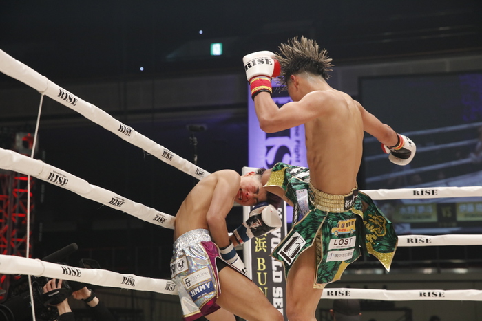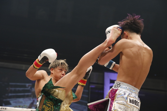 1R、サウスポーの水野に伊藤はフットワークを使って右へ回り込む。カーフを蹴り合い、ワンツーで飛び込む。右ストレートをヒットさせた伊藤はすかさず右カーフ、水野もワンツーを繰り出すが伊藤の右の精度が高い。前へ出る伊藤に水野は左のカウンターを狙う。