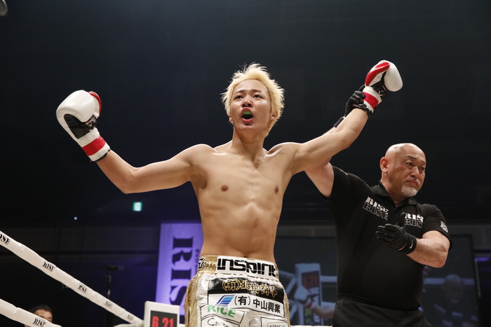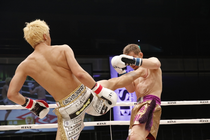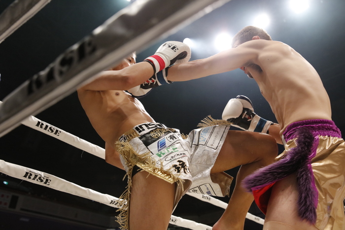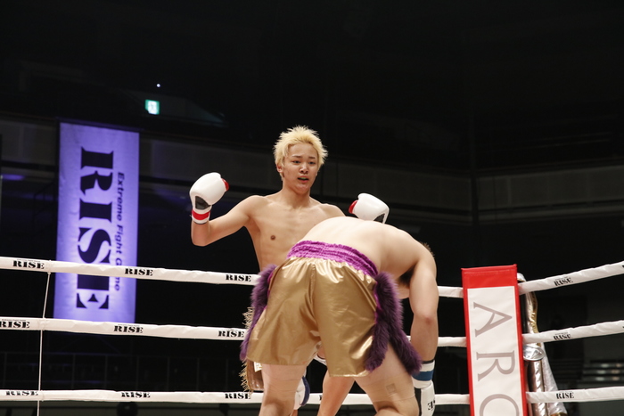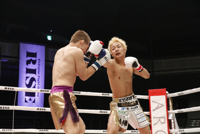 1R、サウスポーの琉樺が左ストレートからバックハンドブロー、ハイキック。前蹴りも多用する琉樺が距離を保ち、ワンツー、ヒザ蹴りを放つ。順規は前へ出ていって右ストレートを打つが、琉樺はジャブで突き放して純樹が再び前へ出てきたところにワンキャッチからの左ヒザをアゴに突き上げる。