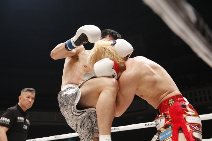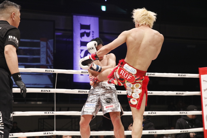 2Rも前に出るのはソンヒョンだったが、原口が右フックからの左ハイキックでダウンを奪う。原口は左カーフを蹴り、左ストレートから左三日月、左カーフ。ソンヒョンはヒザ蹴りと右カーフ。前に出るソンヒョンにショートのパンチを先に当てていく原口。ローブローで中断も原口は蹴っていく。