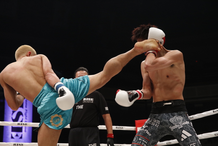 1R、サウスポーの笠原は左ミドル、パヌワットは強烈な前蹴りで笠原を下がらせるが、すぐに笠原が前へ出てパヌワットのミドルにパンチを合わせる。笠原が左ミドルからの左ストレート、すぐに左ヒザ。笠原は徹底したボディ攻め。左ボディストレート、左三日月蹴り、左ヒザと笠原が連続して攻撃を当てた。