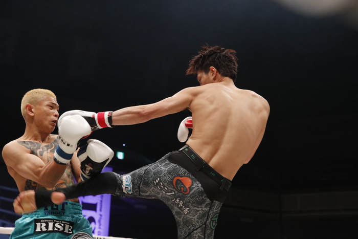 2R、パヌワットは右ハイを蹴り、パヌワットがヒザに来たところで笠原が左フック。左ミドル、左ヒザと再びボディを攻める笠原。パヌワットは待ちの姿勢になって右ミドルを蹴るが、笠原はタイミングよくヒザを突き刺し、左ミドルを蹴る。笠原が左ストレートを打ち込み、正面からもらったパヌワットはよろけてダウン。そのまま立ち上がることが出来ず、笠原の見事なKO勝ちとなった。