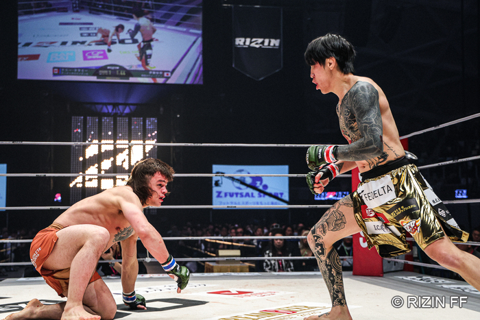 「いやもう、なんか、岩石飛んでくるんじゃねえかっていう重たいパンチだったんで。1R目にダウンしたときのパンチが、結構外からで見えなかったので、結構痛かったですね。もう2、3Rは見切ったので、大丈夫だったという感じです」
