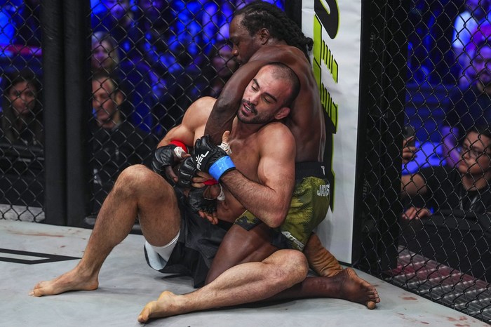 ワンツーのコレシュコフにダブルレッグテイクダウンはジャクソン! コレシュコフは気持ちが折れたか、そのまま右ヒザを越えてマウントを奪ったジャクソンはパウンド、背中を見せたコレシュコフにリアネイキドチョークを極めて失神させた。