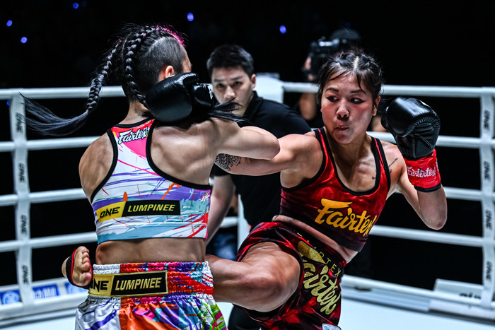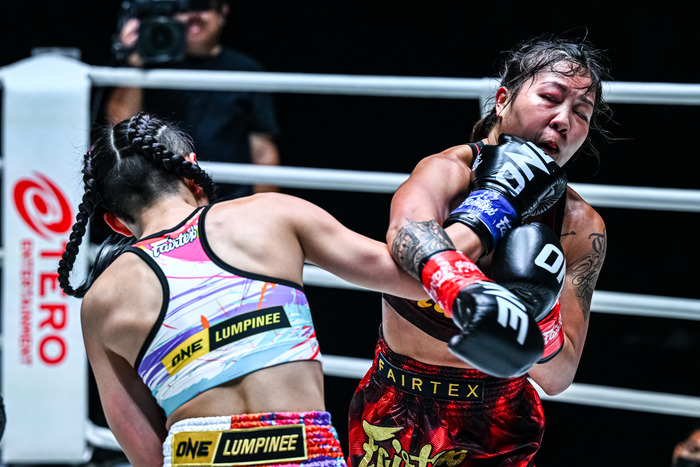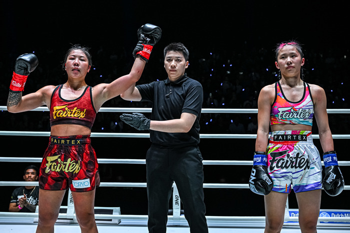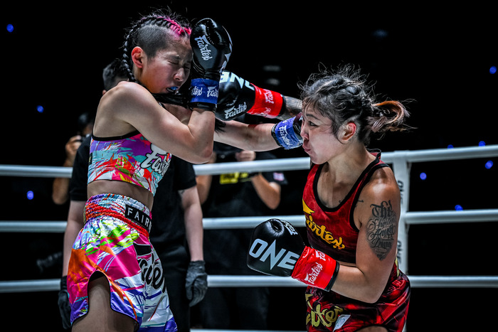 冬華の左ミドルにチーチェンは右フック。冬華も右ストレートをヒットさせるが単発で終わる。ジャブから細かい連打をまとめるチーチェンに冬華は前蹴り。ビッグヒットのある冬華だが、チーチェンのパンチをもらってしまったラウンドに。