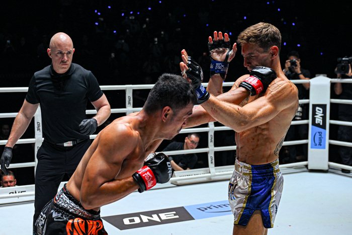 再開後、じりじりと前に出るカリロは前蹴り、シッティチャイは左ボディストレート。カリロは距離を詰めると首相撲からヒジ。シッティチャイは流血する。ボディと顔面にストレートを打ち分けるシッティチャイにカリロはスイッチして左ストレートを放つ。