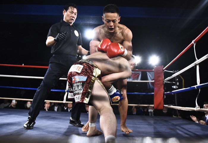 3R、松田は左ミドルを蹴って左ヒジ、さらに組み付いて吉角を浴びせ倒す。松田の左ミドルからの左インローに転倒する吉角。パンチの連打から組み付いた吉角だが、松田に右ヒザをボディに突き刺されてダウンを喫する。組み付いてこのラウンドをしのいだ吉角。オープンスコアは30-27×3。