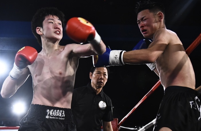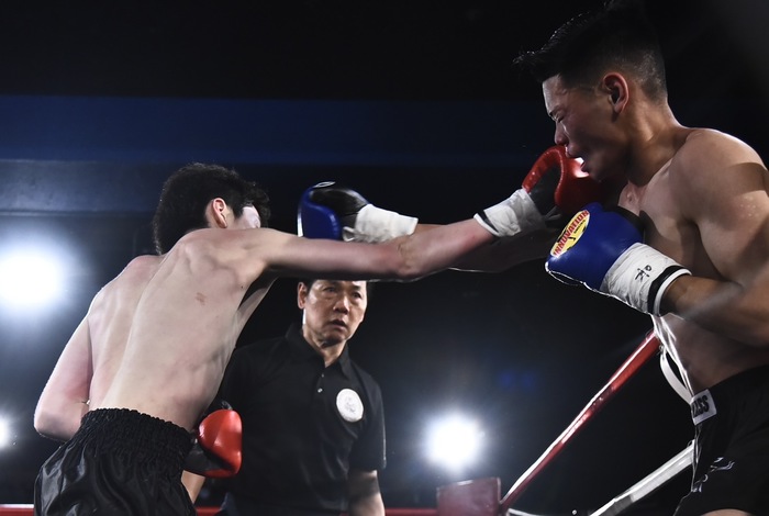 2R、前に出るシオチャイが左ミドルから組んでのヒザ。シオチャイの右カーフに宮田は右ストレートを合わるが組まれる。シオチャイの蹴りになかなか手が出ない宮田は組まれてもヒザを蹴られる。組まれ際に左右フックをヒットさせる宮田。序盤はシオチャイの蹴りに押された宮田が終盤はパンチで盛り返した。オープンスコアは20-19×3でシオチャイ。