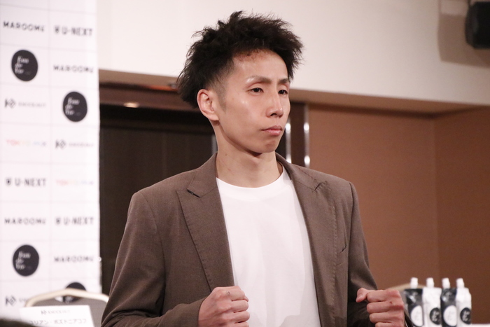 相手の印象については「凄く気持ちの入ったいい表情をしていて、明日の試合がより楽しみになりました」と言い、KNOCK OUT代表として迎え撃つというチュームーシーフーに対してシュートボクシングを背負う気持ちはあるかと聞かれると、「やっぱりシュートボクサーとして出場させてもらうので、僕が中途半端な試合をしたらシュートボクシングが舐められると思う。しっかり勝って、やっぱりシュートボクシングは強いなというのを証明したいと思います」ときっぱりと答えた。