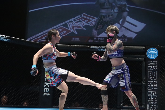 栗山は、2023年2月の中井りん戦での一本負け後は3連勝中。2023年6月の『RIZIN.43』で熊谷麻理奈に1R KO勝ちすると、2023年11月のDEEP JEWELSで齊藤百瑚に1R TKO勝ち。2024年3月のDEEP OSAKAでMANAを1R 左ストレートからのパウンドでTKOと、いずれも初回に相手をマットに沈めている。2024年5月に中井りんと1年3カ月ぶりに再戦予定も右膝前十時靭帯断裂により欠場していた。今回は1年1カ月ぶりの復帰戦を地元で行う。MMA7勝5敗1分。