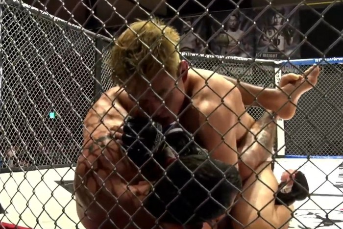 1R、ガンドルフィの右ローに小森は組んで左差し、さらに右差しで首相撲ヒザ。小外がけでテイクダウン。ガンドルフィは左ギロチンチョーク狙いから腕を外してケージに上半身を立てて立ち上がるが、小森は再び押し付けて両脇差しヒザ。右足を挟んでから腰を引いたガンドルフィに右で脇差し脇潜りバッククリンチへ、ガンドルフィは潜りから足関節外がけも回って外した小森が上から鉄槌。