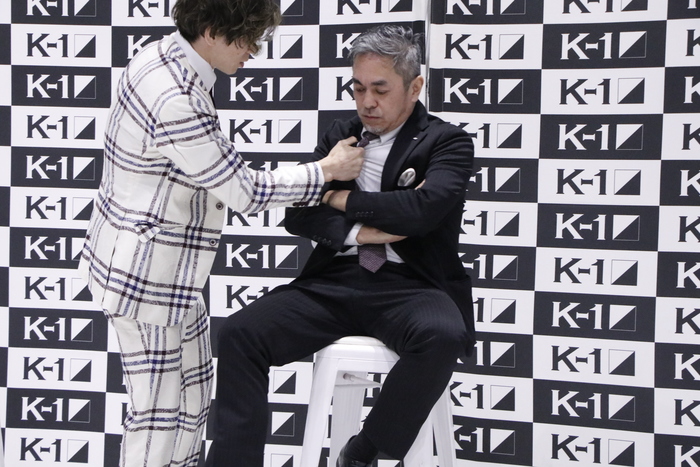 最初に宮田充K-1プロデューサーは「そもそもK-1スーパー・フェザー級王座は(レオナが)防衛戦を2年間行わず止まっていた。前王者が獲るとまた冬の時代、時計が止まるのではないかという不信感が拭えない。(レオナの)言う通りにしてどうなのかっていうのがあって。未来のある(レオナと一緒に出場の名乗りをあげた)松山勇汰は本戦に入ってもらおうと思いました。レオナ選手は1年半試合をしていない、どれくらいなのかと。試合は11カ月ぶりなので、まずはリザーブに出てよということにしました。コンスタントに試合をしていればアレだけれど、いきなり3試合はキツいだろうとの気遣いのつもりでやったことです」と説明。
