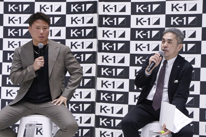 これに宮田充K-1プロデューサーは「ヘビー級のベルトはコロナ禍で止まっていた。ロエルとは昨年からやり取りをしていて無差別級トーナメント出場の話もあったが間に合わなくて。K-1としてもヘビー級をアピールしたい、そのためにインパクトがあるのがいい。ロエルがどうとか言うよりは、K-Jee選手にはベルトを獲ってヘビー級を輝かせるという重要な任務が課せられたと思ってください」と答えた。