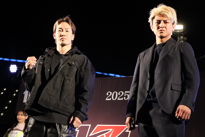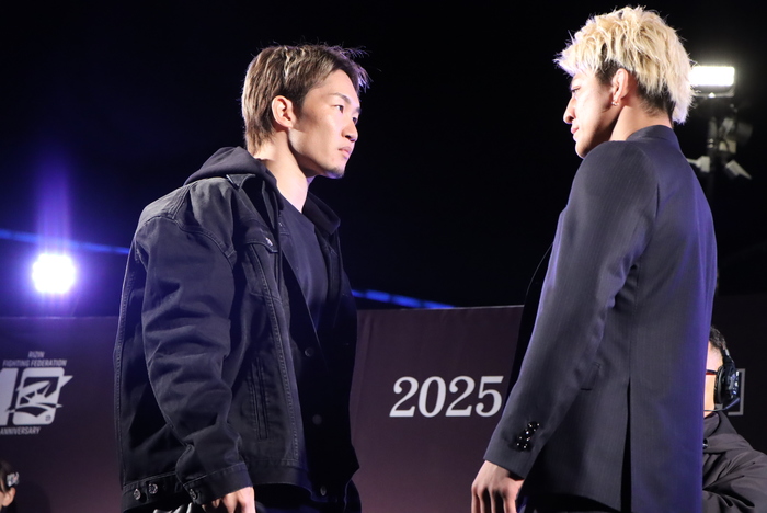 東京ドームでの激突が決まった朝倉未来と鈴木千裕のフェイスオフ(C)RIZIN FF/GONG KAKUTOGI