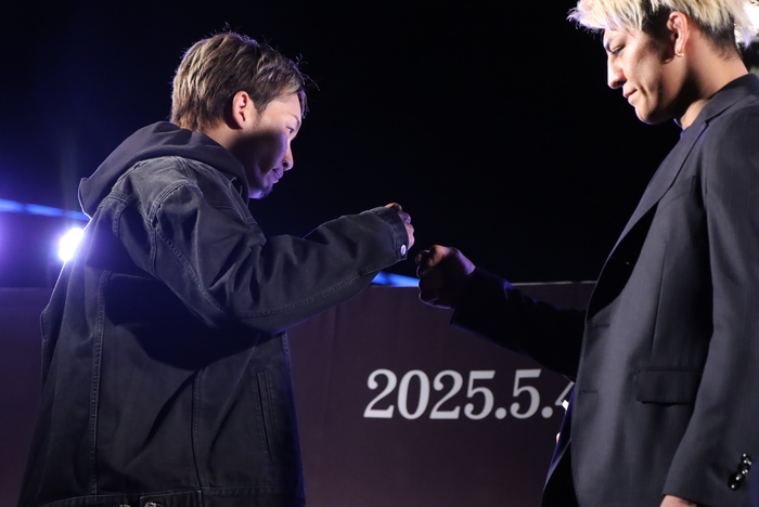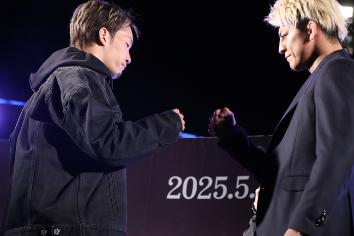 【写真】フェイスオフの最後には朝倉から拳を差し出し、鈴木も拳を出して合わせた。