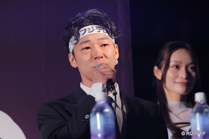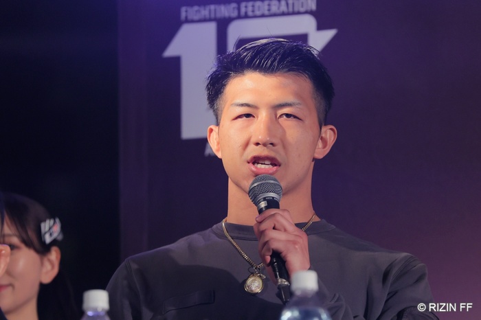 質疑応答では会社から許可を得ているのかとの質問に「親しい先輩たちには相談していますが、正式な許可は取っていません。親しい先輩方は背中を押してくれますし、もし会社にデメリットがあるとしたら僕が無様に負けることだと思うので圧倒的な勝利か圧倒的な敗北、分かりやすい試合をしたいと思っています。このまま突っ走って会社にも世間の人にもファイトを見せてそこで感じて欲しいです」と、どうやら会社には話を通していない様子。
