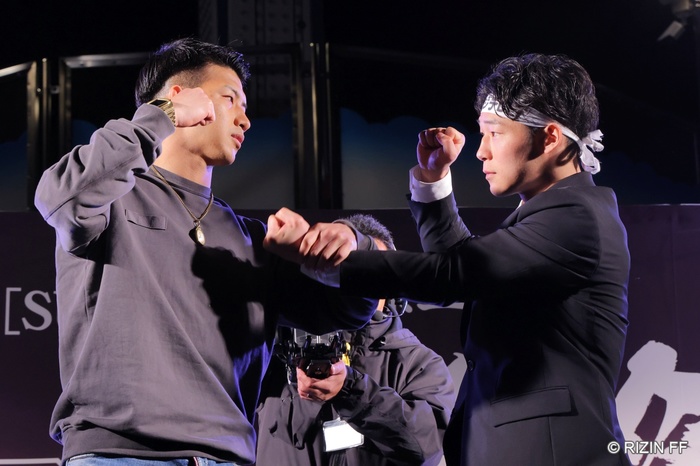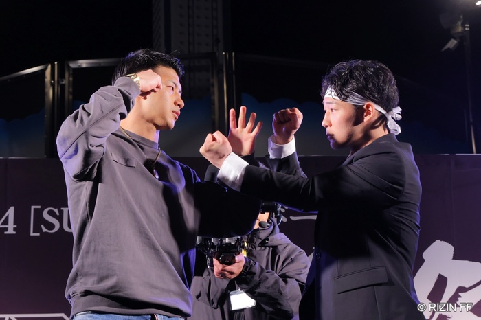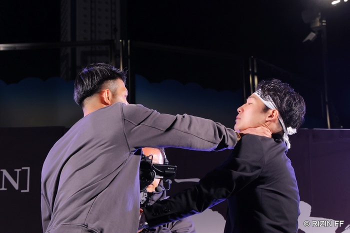 フェイスオフで朝久がウザ強にのど輪を仕掛け、険悪な雰囲気となった(C)RIZIN FF