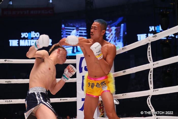 【写真】K-1所属時代の芦澤竜誠(右)は『THE MATCH 2022』にてYA-MANとOFGマッチを行っている
