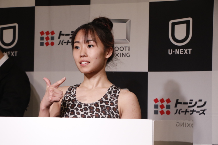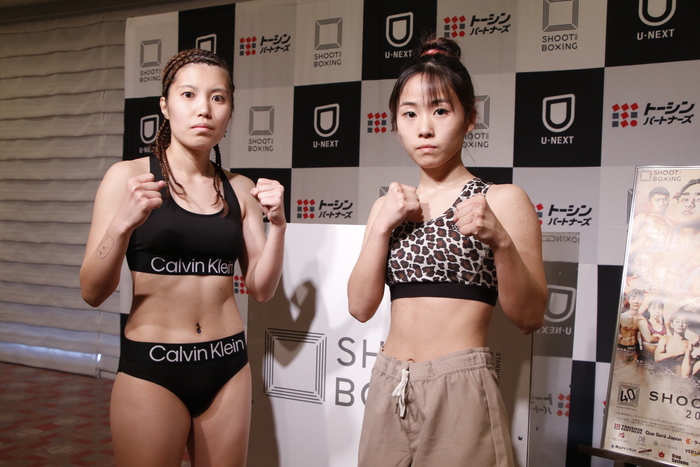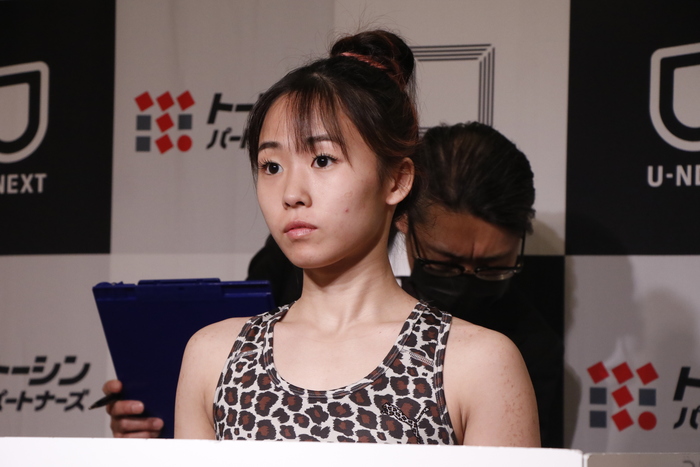 今大会で唯一の女子マッチ、第3試合の44.0kg契約3分3R延長無制限Rで対戦する、風羽(龍生塾ファントム道場/SB日本女子アトム級1位)は43.45kg、Uver∞miyU(T-KIXGYM/ミネルヴァペーパー級4位)は44.0kgジャストでそれぞれ計量をパス。