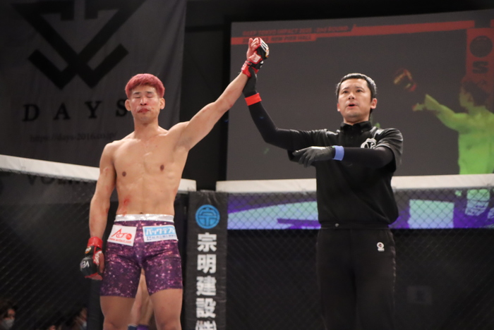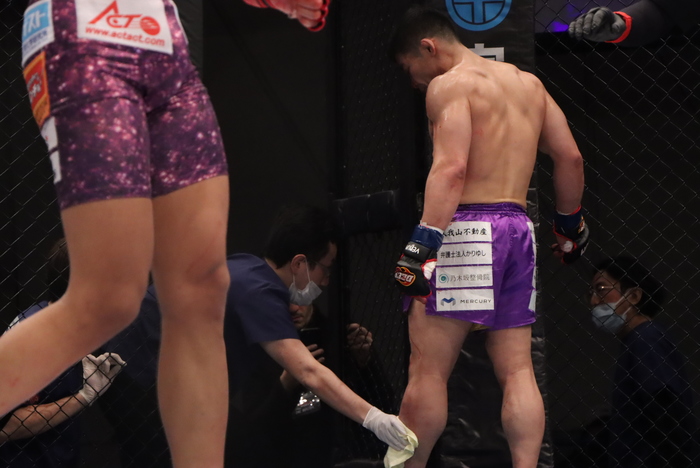 (相手の左脛のカットは)結構めくれてる感じは見えたんですけど、まさかドクターストップになるとは……しっかり狙って打った結果でダメージを与えたので、ドクターストップですが、まあ文句なしの勝ちかなと。