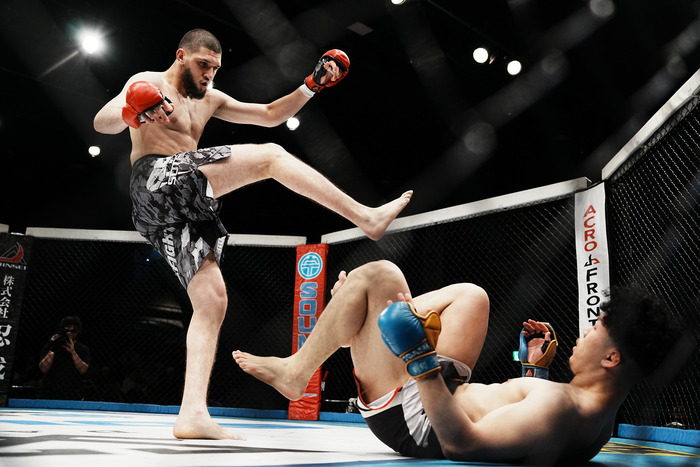 1R、開始からすぐに田所がダブルレッグに行ったがこれは切られる。前蹴り、左ミドルを蹴るデザールに左フックを繰り出す田所。強い右ローを蹴った田所、2発目にはデザールが右ストレートを合わせて田所は後方へ転倒、足を蹴ってきたデザールに起き上がってのシングルレッグで尻をつかせる。