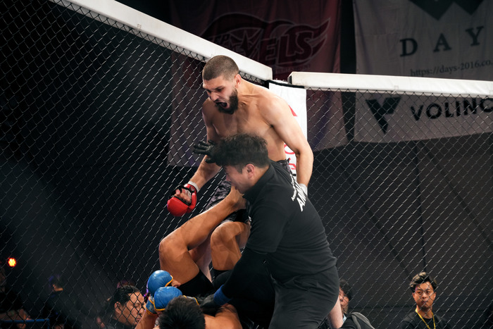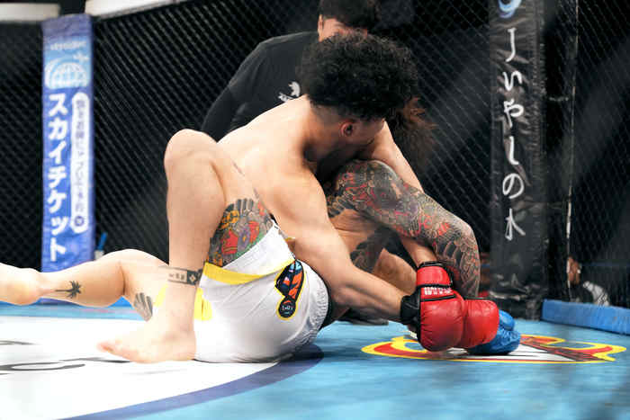 起き上がろうとしたデザールに田所はギロチンを仕掛けるが頭が抜ける。デザールがパウンドを打つと田所は蹴って突き放し、立ち上がる。