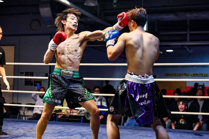 3R、G-REXは右ミドル、右ロー。巻き返しを狙う浅野はパンチ連打で距離を詰めると、疲れを見せるG-REXはパンチを出しながら組み付いて浅野の連打を寸断。最後まで浅野は攻め続けて意地を見せたが、ダウンを取ったG-REXが逃げ切って判定勝ちした。