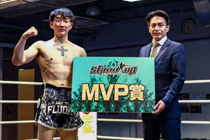 3R、プレスを強める斎藤は、ローの距離を潰して右ストレート。サンギュは近距離での打ち合いに応じて一歩も退かない。最後まで両者は激しく打ち合ったところで試合終了。サンギュがフルマークの判定勝ちし、大会MVPも獲得した。