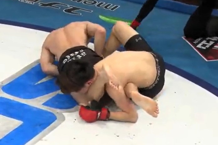 越智晴雄がセコンドの田村晃に、須田雄律は萌里の弟。5歳からMMAの練習を行っていて、現在15歳。父・智行氏がセコンド。