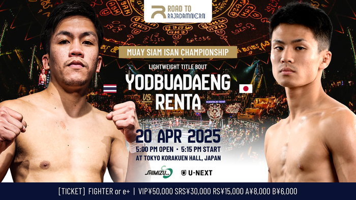 2025年4月20日(日)東京・後楽園ホール『Road to Rajadamnern』(U-NEXT配信)のメインイベントで、MUAY SIAM ISAN ライト級(61.23kg)タイトルマッチとしてヨーブアデン・ソーシリラック(タイ)と対戦するレンタ・ウォーワンチャイ(=松井蓮汰/ウォーワンチャイプロモーション)のインタビューが主催者を通じて届いた。