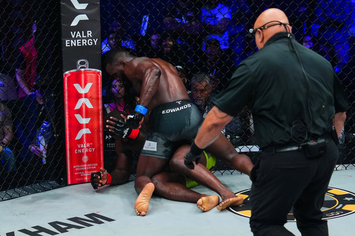 (C)PFL カサンガネイを2R TKOに下したエドワーズ(左)