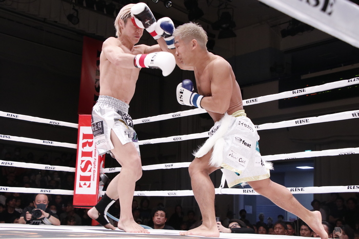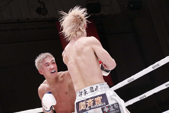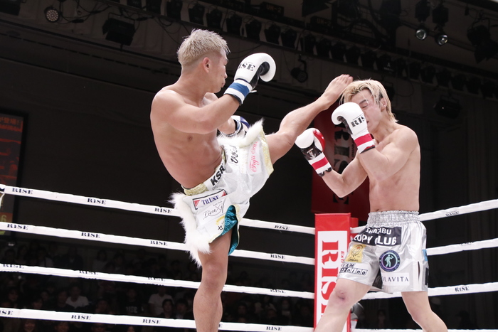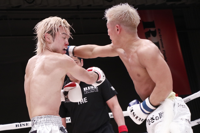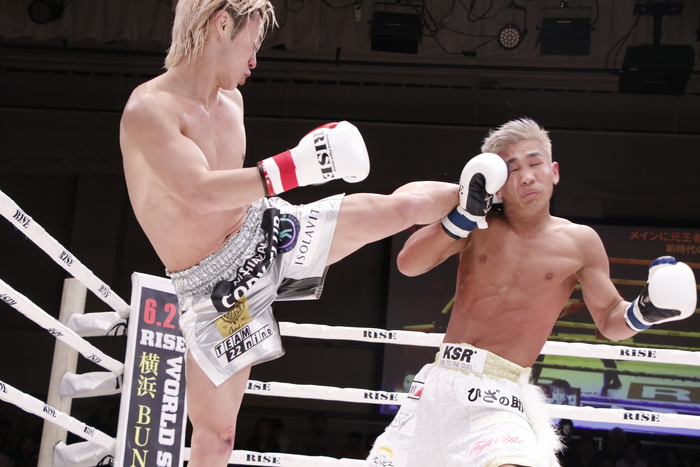 1R、良星の右カーフと伊東の左ミドルの相打ちが続く。良星はかつてないパワフルさで右カーフ、スーパーマンパンチ。序盤は良星のスピードある攻撃に後手に回った伊東だが、ワンツーで反撃。