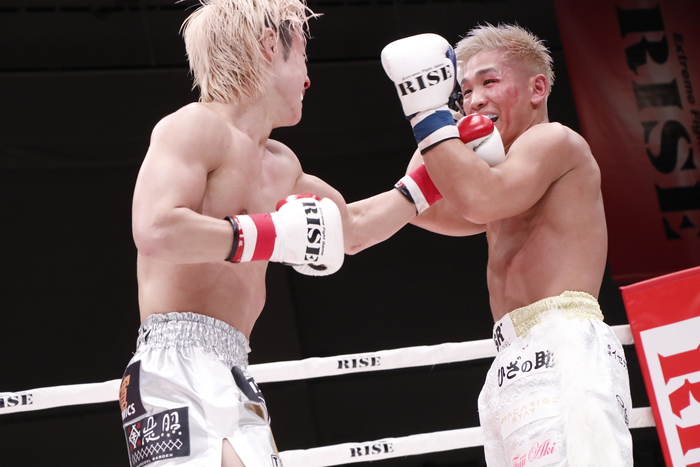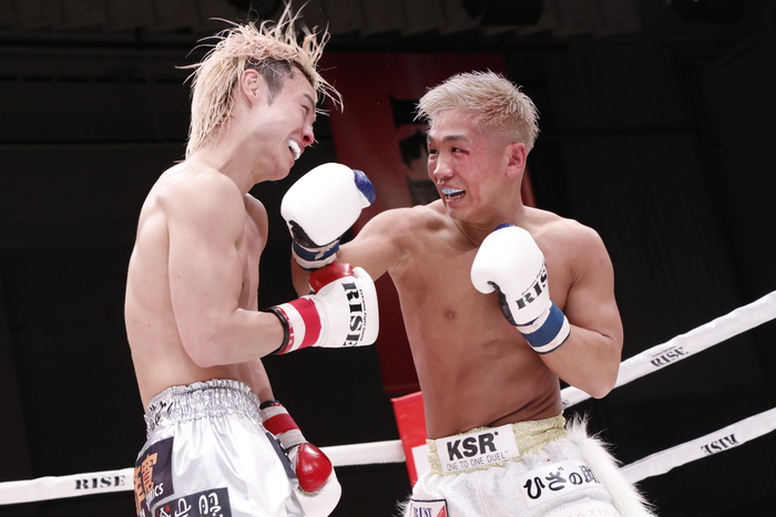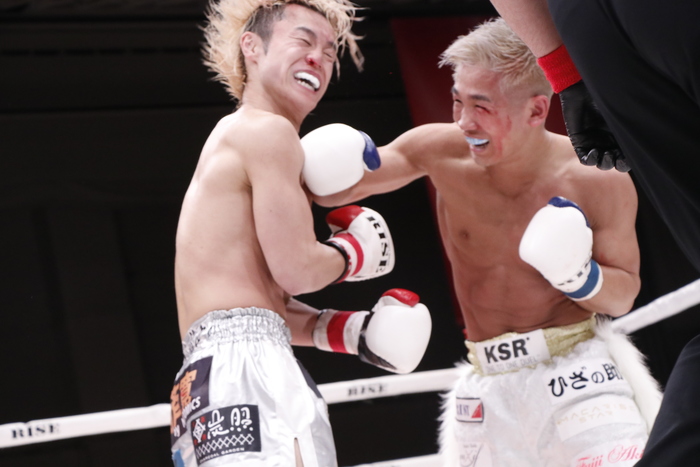 3R、両者至近距離での打ち合い。ヒットを奪うのは伊東だったが、それでも手を止めない良星が次第に右をヒットさせる回数を増やしていく。両者笑顔を浮かべての殴り合いが続き、前へ出て手数が全く落ちない良星が最後まで攻め続けた。