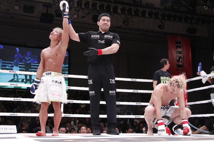 判定は2-0で良星が辛勝、勝利をもぎ取った。マイクを持つと「おもろかったでしょう? 何が何でも倒したい気持ちが出てしまって、まだまだ進化過程です。僕は上の相手に勝てたのでタイトルに挑戦していきます。まだまだ進化します」と甲高い声を会場に響かせた。