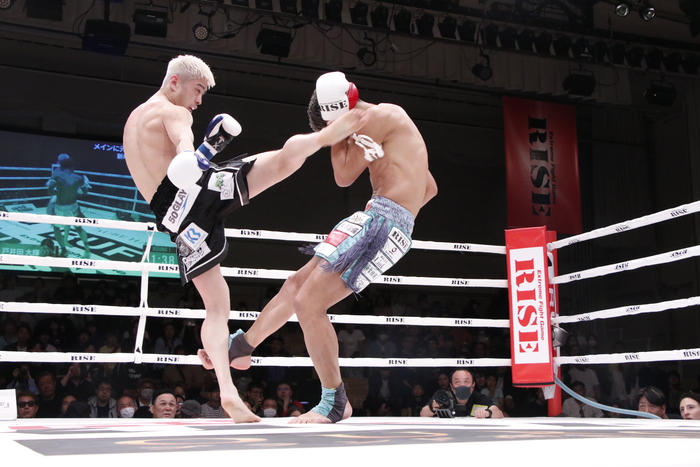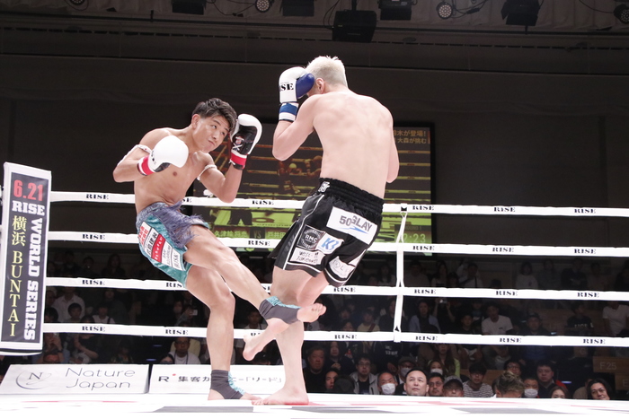 1R、両者右カーフを蹴り合う。戸井田は右の蹴りからの左フック、久津輪は右カーフから右ハイ。序盤は戸井田が左フックで優勢だったが、中盤からは久津輪がボディを中心としたコンビネーションで盛り返す。